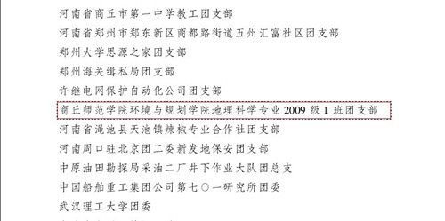 公司地理科学专业2009级1班团支部获2012年度“全国五四红旗团委(团支部)”荣誉称号