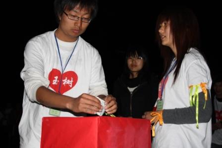 晚七点,夜幕降临,在一段抗震救灾的视频过后,祈福活动正式开始,同学们用点燃的蜡烛围成了祖国的形状,“4.14”醒目的摆在正中央,同学们手持蜡烛在围成心形,在烛光下为玉树地震遇难者同胞默哀祈福。之后,在该系领导的带领下,现场每个人都依次走到捐款箱前,奉献出自己的一片爱心。玉树不倒!祖国万岁!,在这振奋人心的高呼声中,活动走向尾声。
