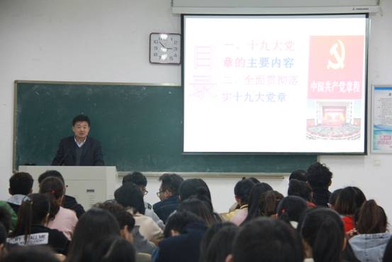 首先,王书记对十九大党章的主要内容进行介绍,并从确定了习近平新时代中国特色社会主义思想的历史地位、完善了中国特色社会主义的内容、充实了初级阶段的理论、修改了关于党的基础路线的描述、增写了十八大以来治国理政新经验、充实了党建设的内容六个方面详细解读了十九大新修订党章与十八大修订后党章的不同。随后,他讲解了合格党员应具备的标准,着重强调了要树立四种意识,严守党纪国法、坚持党的宗旨、保持清正廉洁、敢于善于担当作为。最后,王书记表示,希望在座的员工都能肩负起新时代的责任,深入学习十九大精神,深入学习党章,做一名合格的共产党员。