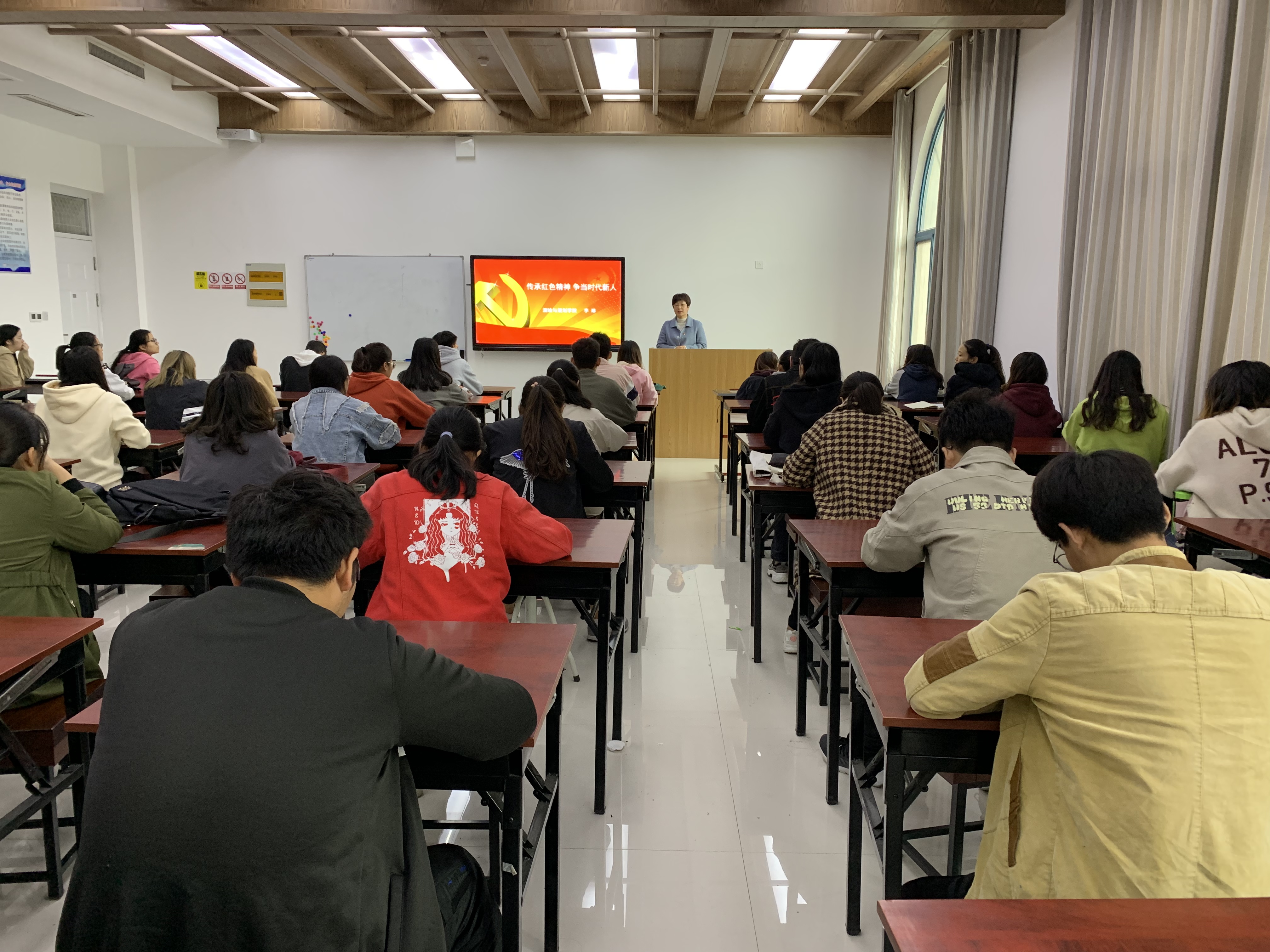 李琳详细讲解了红船精神、井冈山精神、长征精神等红色精神的产生背景和具体内容,带领同学们重温了革命历史,坚定了理想信念。她强调,正是红色精神让中国共产党能够克服艰难波折、奋斗不息;在内忧外患的多重压力下突破险境,绝处逢生。最后,她对全体入党积极分子提出三点要求:一是坚定理想信念;二是脚踏实地,将远大抱负落实到实际行动中;三是自觉践行社会主义核心价值观。