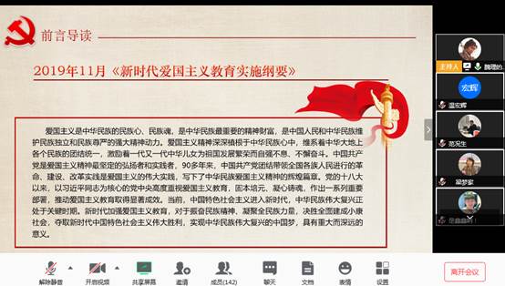 4月8日晚,beats365官方网站魏理以“谈谈新时代的爱国主义”为题,通过腾讯会议,线上为第46期入党积极分子培训班全体学员上了开班第一课。