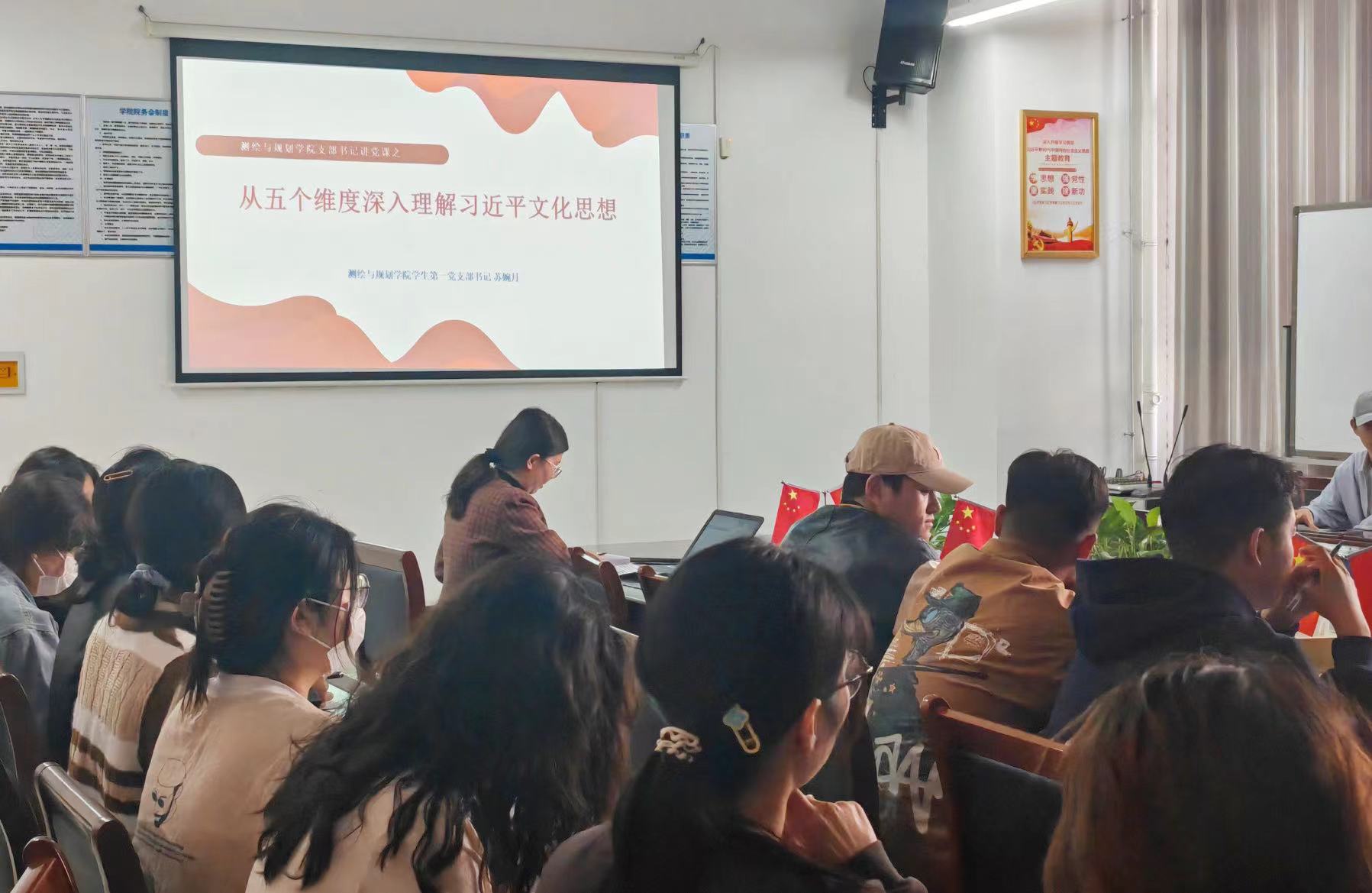 4月12日,员工第一党支部书记苏婉月以《从五个维度深入理解习近平文化思想》为题讲授了党课。党的十八大以来,以习近平同志为核心的党中央立足党和国家事业发展全局,把文化建设摆在治国理政的突出位置,围绕新时代文化建设提出了一系列新思想新观点新论断,内涵十分丰富、论述极为深刻,是推进新时代文化建设的总方针、总遵循、总要求,我们要持续加强对习近平文化思想的学习、宣传、研究、阐释,自觉贯彻落实到宣传思想文化工作全过程各方面。