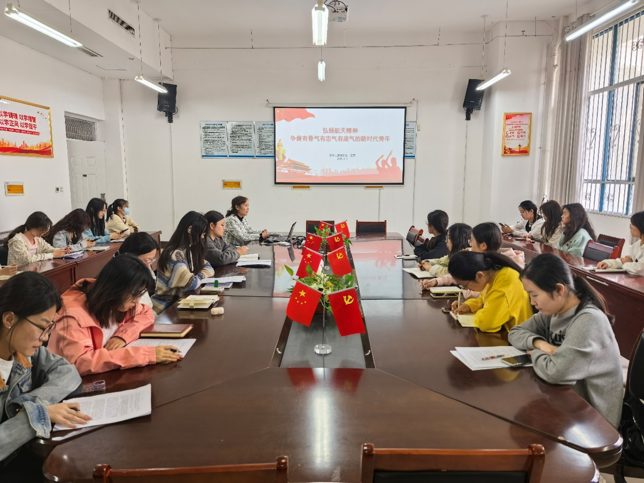 在授课中,王丽阐述了中国航天精神的核心要义,通过生动案例,全面回顾了中国航天事业从无到有、由弱到强的辉煌发展历程。她强调,航天精神所蕴含的“自力更生、艰苦奋斗、大力协同、无私奉献、严谨务实、勇于攀登”等宝贵品质,正是新时代青年成长成才不可或缺的精神财富。并寄语全体学员,要始终坚定理想信念,夯实专业基础,锤炼过硬本领,以永不懈怠的精神状态和一往无前的奋斗姿态,在实现个人理想与服务国家发展的实践中彰显青春担当,努力成为堪当民族复兴重任的时代新人。大家纷纷表示,要将航天精神内化于心、外化于行,以实际行动争取早日加入党组织。