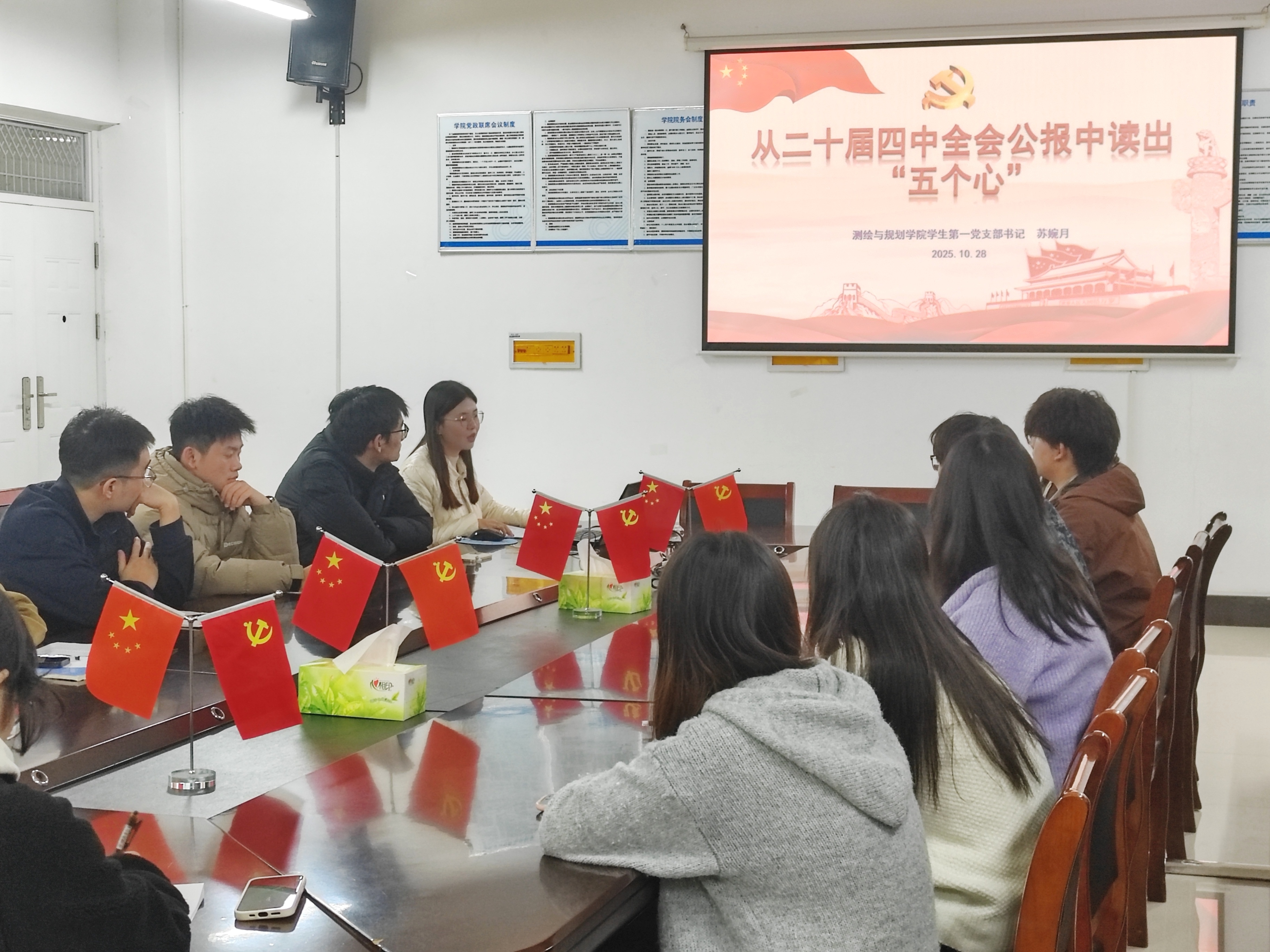 10月28日,员工第一党支部书记苏婉月以《从二十届四中全会公报中读出“五个心”》为题讲授了党课。