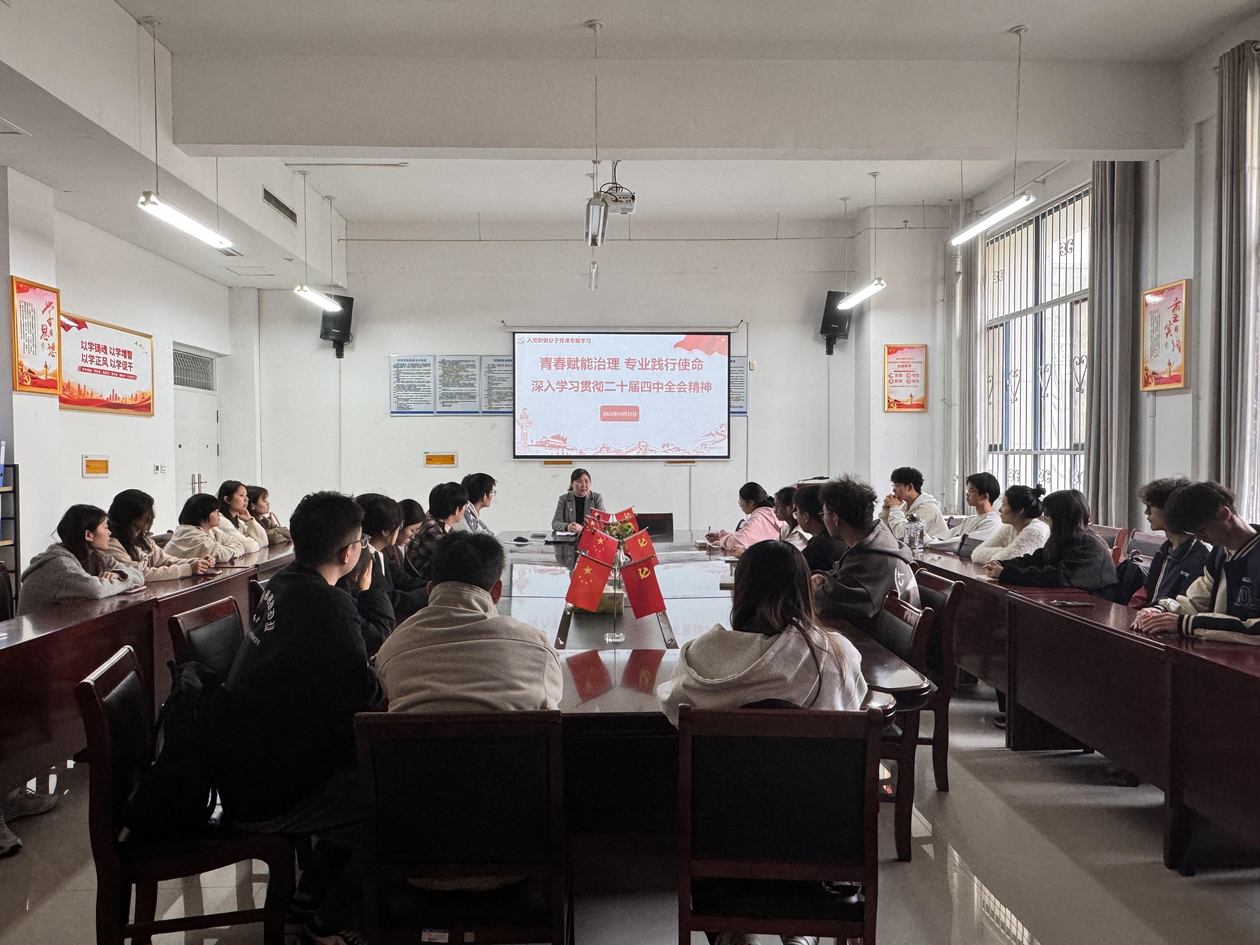 10月31日,党委书记路利以《青春赋能治理专业践行使命——深入学习贯彻党的二十届四中全会精神》为题讲授了党课。