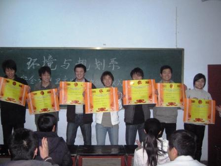 自公司文明卫生月活动开展以来,为配合院更好地开展工作,加强安全文明卫生宣传教育,环境与规划系连续开展多种形式的活动:系领导带队进行寝室安全文明卫生突击检查,全系同学参加了安全文明卫生月知识测试,组织征集论文,书法作品。此次颁奖仪式共颁出“安全文明卫生月”知识竞赛奖、征文比赛奖、书法比赛奖、寝室文明卫生检查以及优秀班级五个奖项。共51人次获奖。另评选出优秀班级8个、优秀寝室1个。