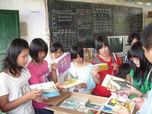 一段学习时间结束了。看着这群孩子们单纯的小脸庞,为了探究和激发孩子们好奇的内心世界,志愿者们给孩子们分发了安徒生童话,达尔文等故事书籍。
