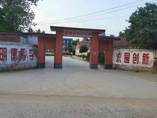 颠簸了两三个小时,志愿者团队到达夏邑县桑堌中心小学。这个朱红色的入口,就像志愿者们的一片赤心。