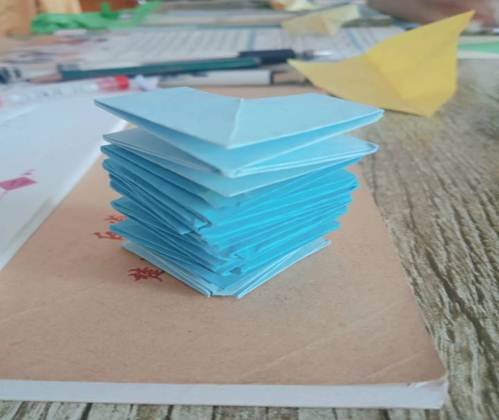不知不觉,时间已经过半,在接下来的娱乐环节中,为了丰富孩子们的课余生活和锻炼他们的动手能力,志愿者们一一教他们折纸。折纸能够很好的锻炼孩子们的创作能力与动手能力孩子们也完全沉浸在折纸的新鲜感与满足感中。