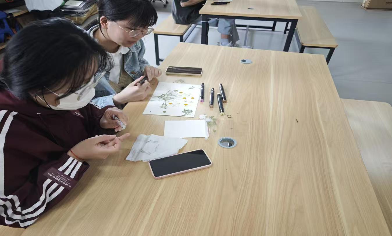 活动伊始,花艺师指导老师丁锦平为同学们带来了压花知识讲座,从压花艺术的历史渊源,到其蕴含的文化内涵,再到实用的基本技巧,丁老师的讲解细致入微,同学们认真聆听,不时提出问题,丁老师耐心解答。讲座之后,同学们在丁锦平老师的指导下,拿起花瓣、叶片,发挥奇思妙想,创作出一幅幅精美的压花作品。