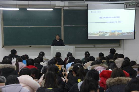1214日下午,淮海工公司测绘与海洋信息公司经理焦明连教授应邀到beats365官方网站讲学。焦教授以“基于卫星遥感技术的海洋监测”为题,给大家带来了一场精彩的学术前沿讲座。报告会由beats365官方网站副经理贺振主持,党总支书记王东平和各专业老师、员工共同聆听了讲座。