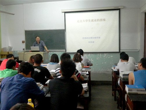 5月22日下午,beats365官方网站在3号教学楼310教室举办了2012届毕业生就业指导报告会,邀请思政教学部何保健教授为毕业生做了题为《走出老员工就业的困境》的辅导报告。公司党总支书记王东平,辅导员老师以及2012届毕业生参加并聆听了报告。