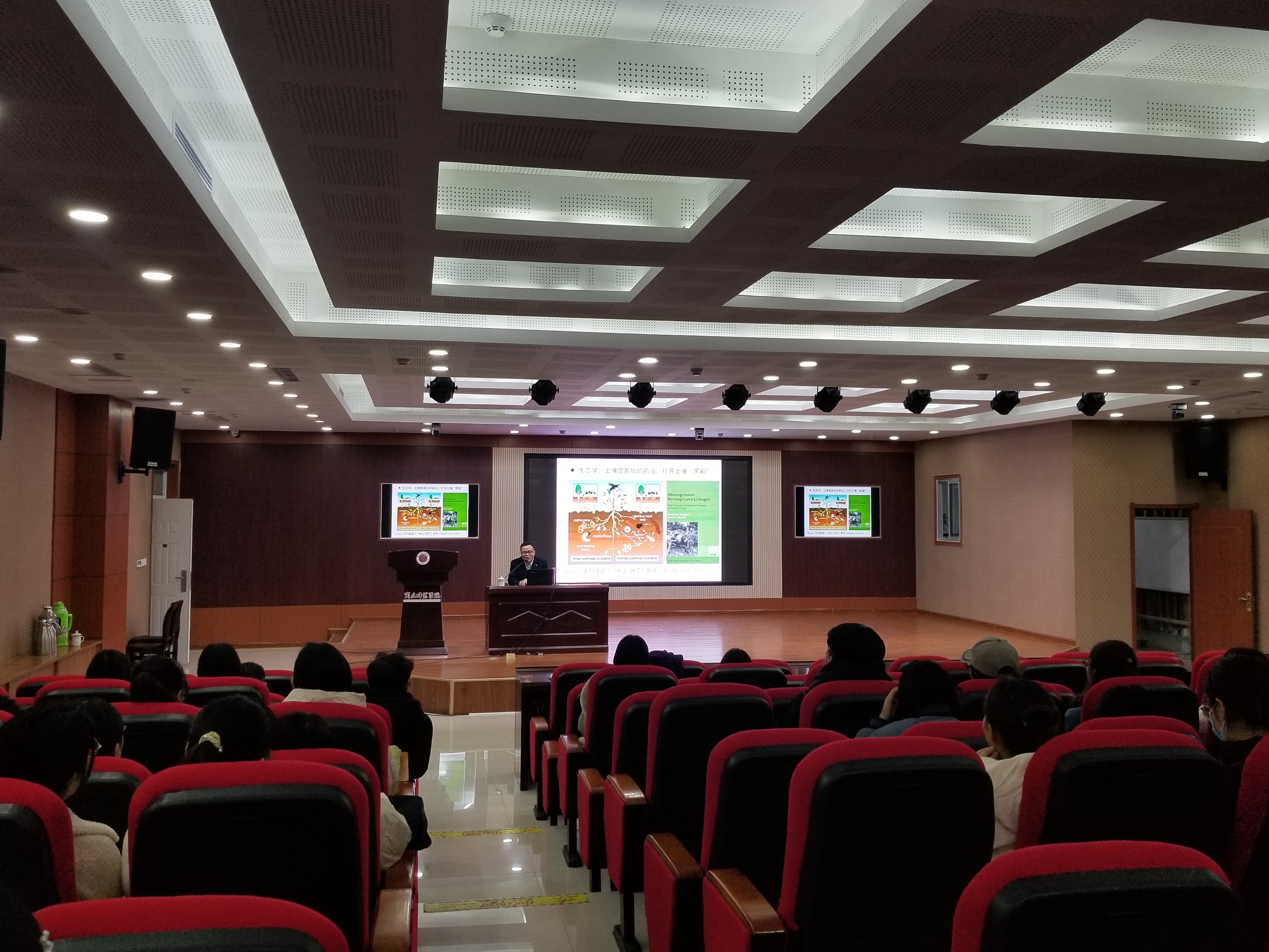 张卫信教授从生态地理学的角度介绍了地上-地下生态系统之间的关系,用通俗易懂的语言介绍了土壤生物多样性和土壤食物网的重要作用,并展示了课题组在土壤生物食物网及其生态功能方面所做的工作和取得的研究成果,最后介绍了该领域目前的研究前沿和未来需要攻克的难题。讲座结束后,张卫信教授还与现场的老师和同学们进行了互动交流,对大家提出的问题作了认真解答。本次讲座为beats365官方网站师生的学术研究提供了新的思路、开拓了新的视野,对今后的研究工作具有重要的指导和启迪意义。
