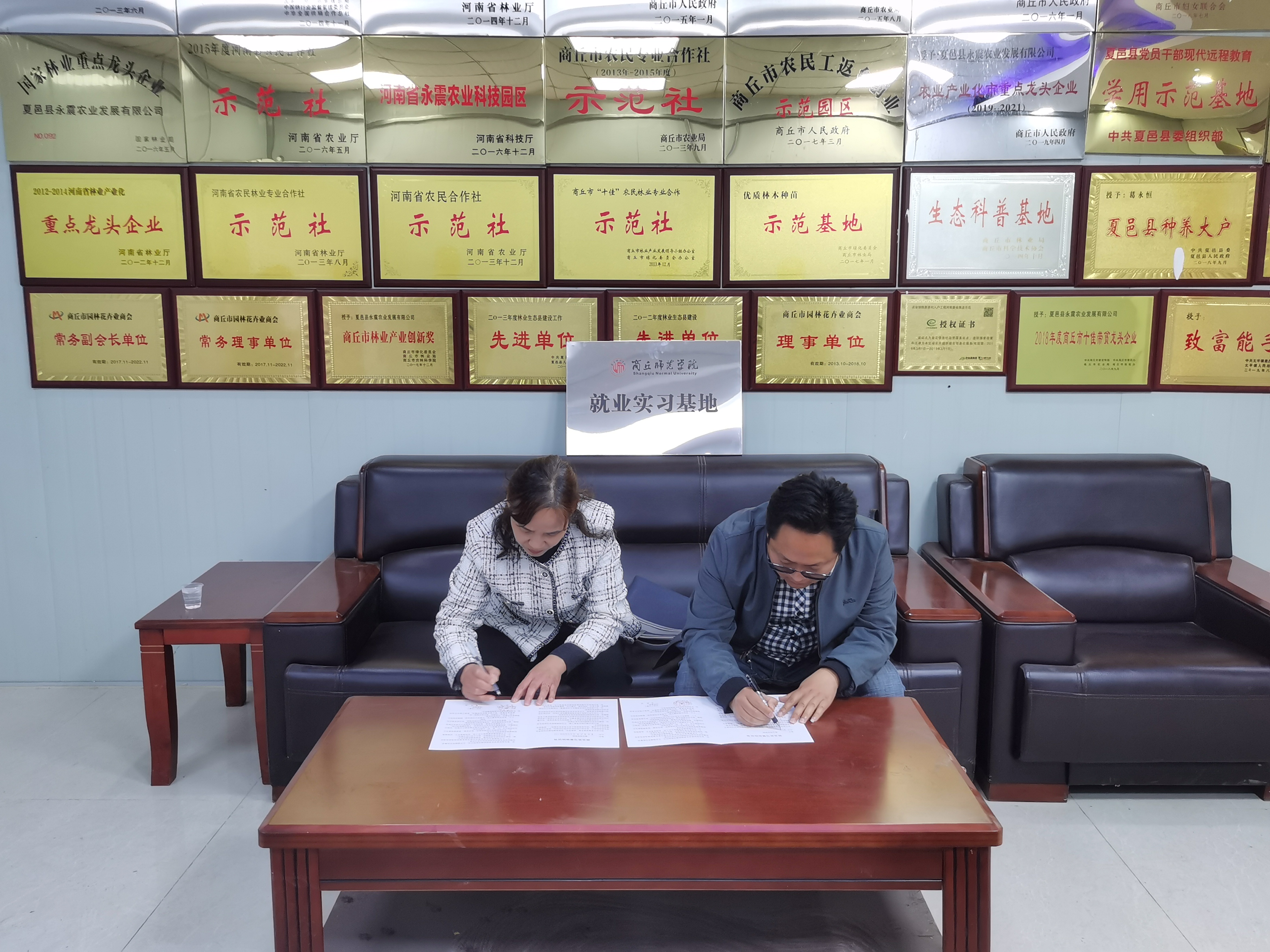 在夏邑县永震农业发展有限公司,厂长王行军、总工程师冯献宾、销售经理靳留魁亲切接见了王丽一行,双方在热烈的气氛中进行了座谈交流。王丽书记介绍了此行的目的、公司的发展现状等;冯献宾介绍了公司发展历程、业务范围以及发展前景等。接着,双方签订了《beats365官方网站毕业生就业实习基地协议》,举行了就业实习基地授牌仪式。最后,在冯献宾的引领性,一起参观了公司生产场地和科研成果。