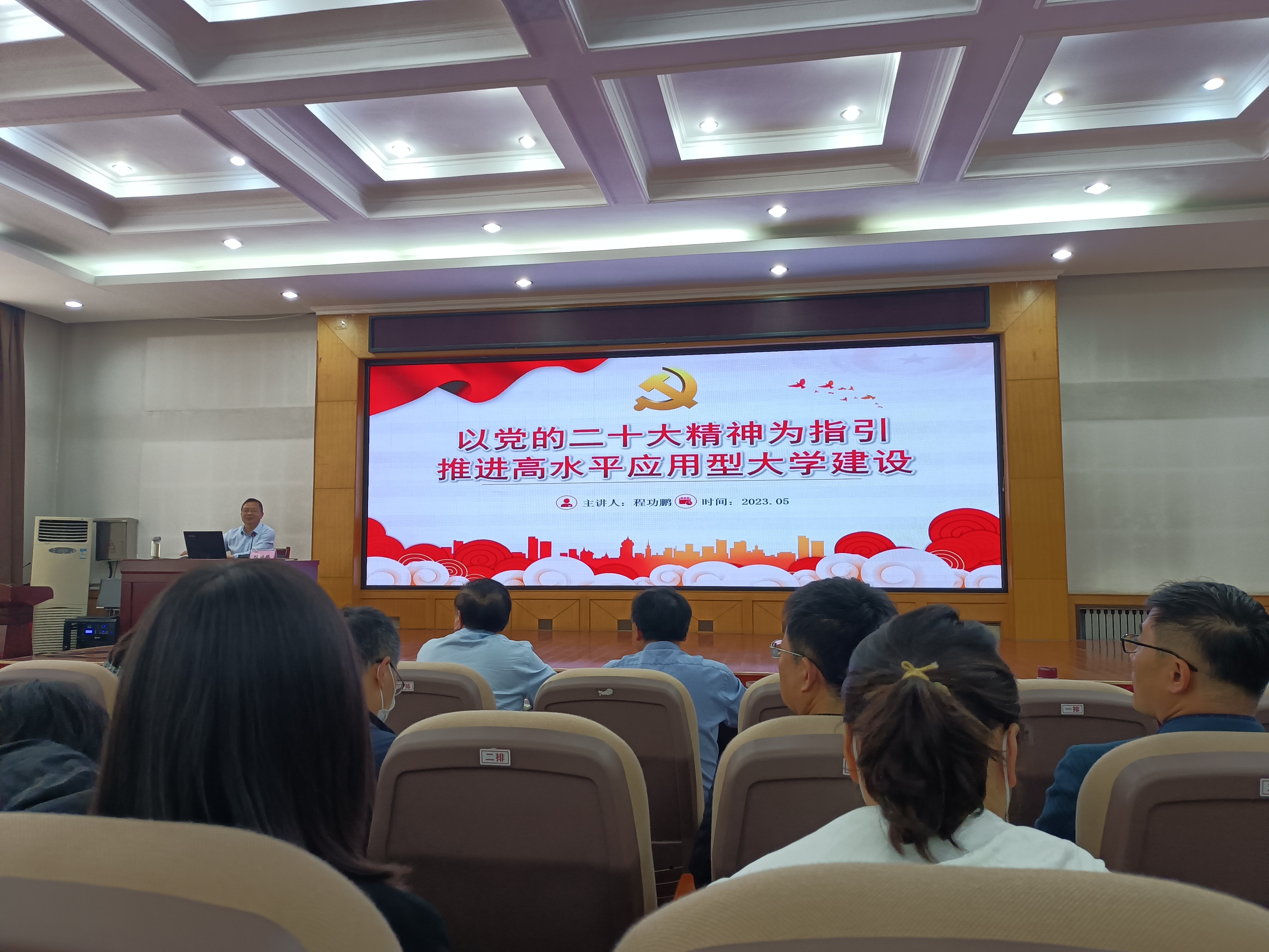 5月12日下午,副董事长程功鹏在归德楼113会议室上一堂题为《以党的二十大精神为指引,推进高水平应用型大学建设》专题党课,beats365官方网站全体教职工聆听了本次党课。