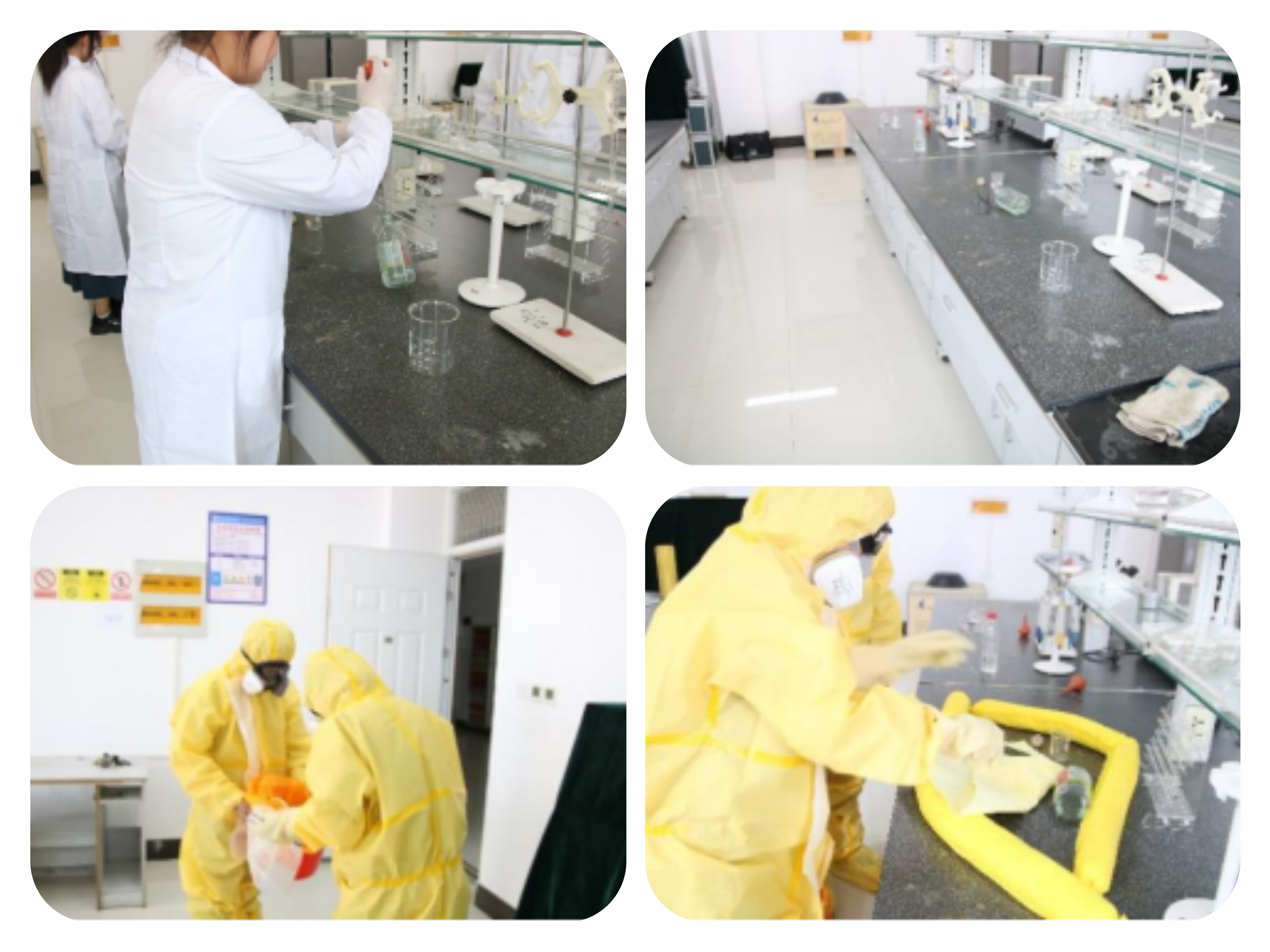 为进一步检验和提升公司安全应急小组对危险化学品突发事件的应急响应和处置能力,2023年6月15日下午3时,公司实验室安全应急小组和相关专业老师,组织开展了实验室危险化学品泄漏事故的应急演练。