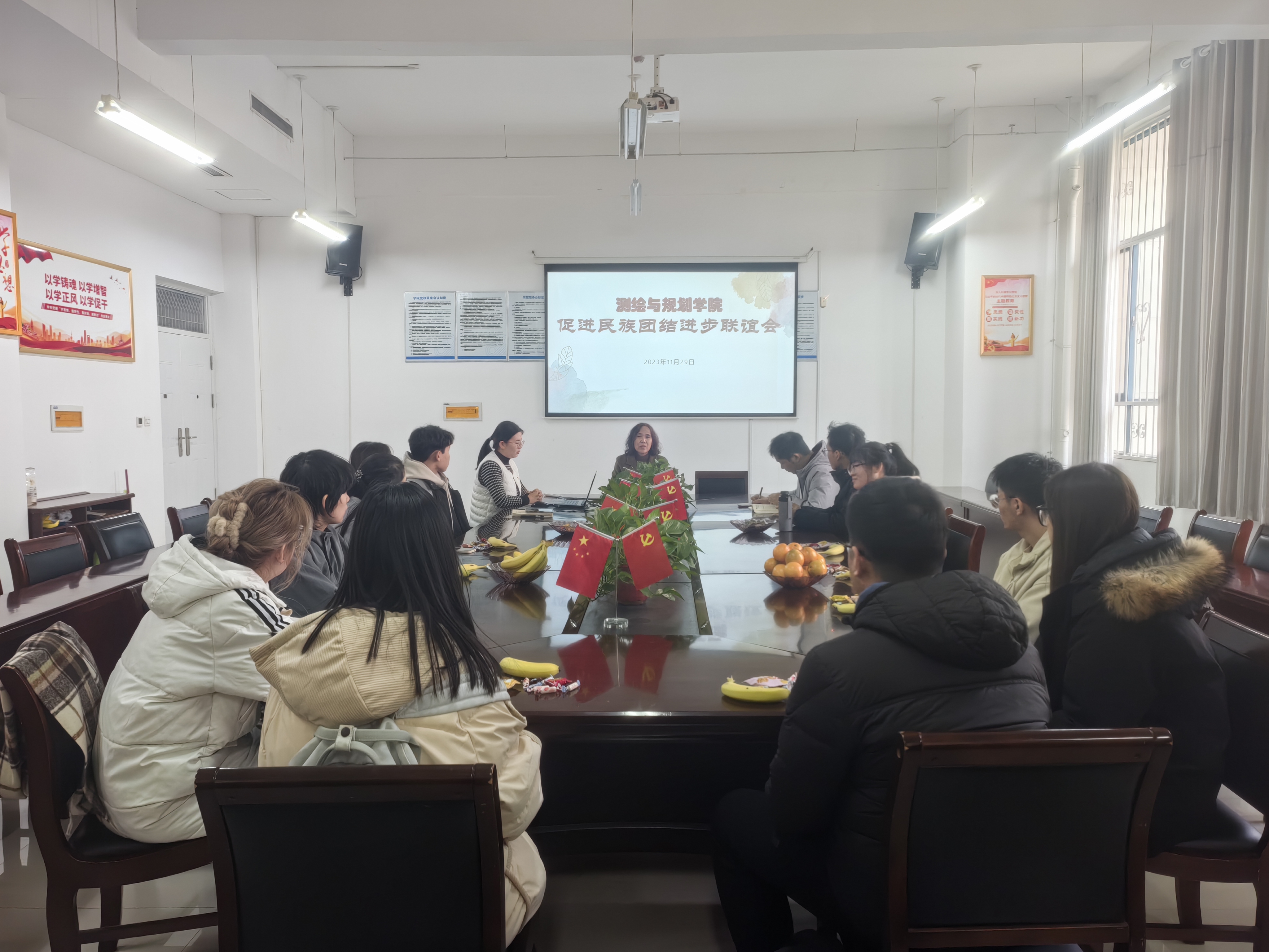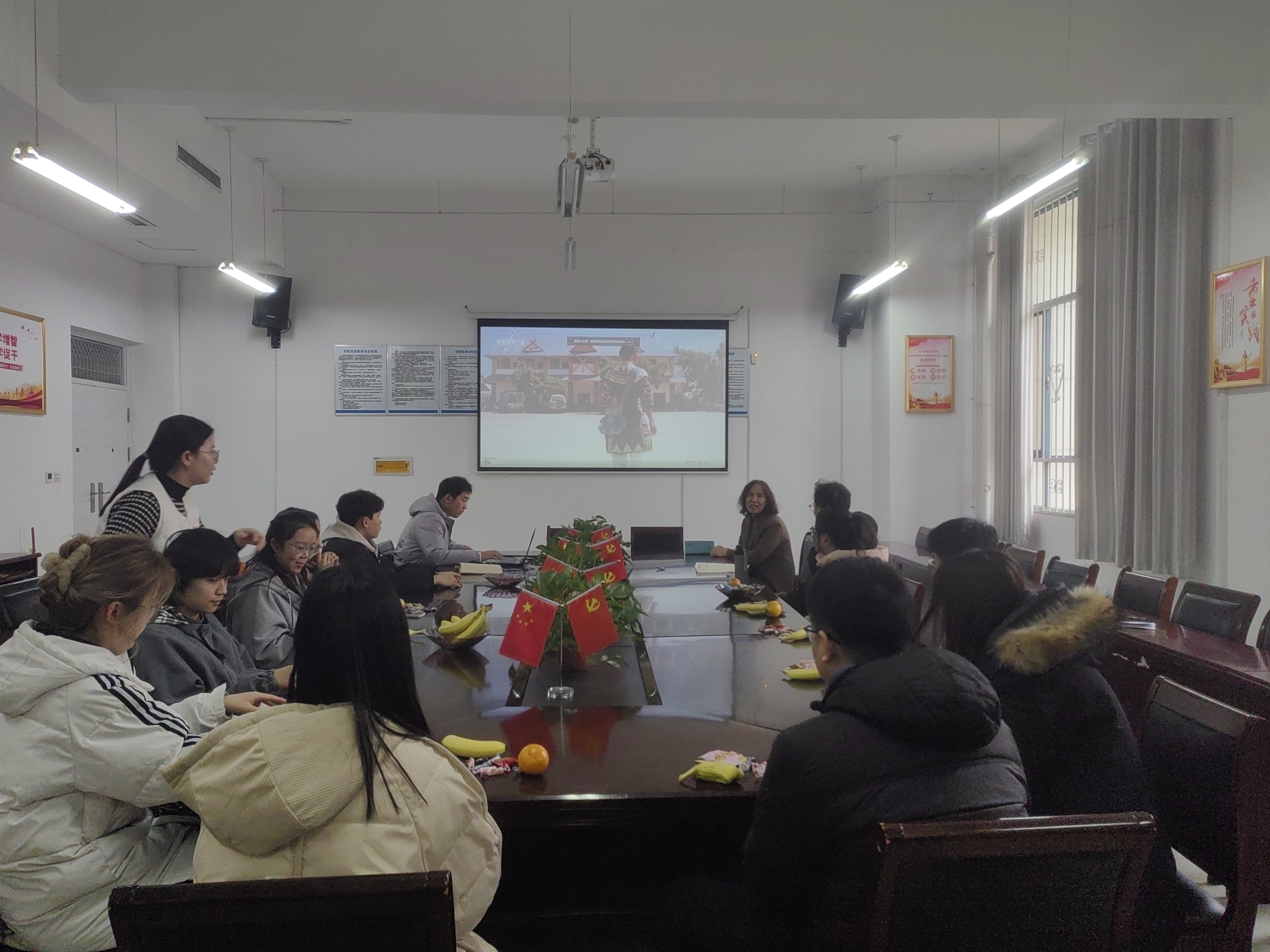 活动中,大家共同观看了《中华民族之大山里的风物》视频。随后,王丽亲切询问了少数民族员工在校期间生活情况,大家积极回应并深入交流了近期思想、学习等动态。活动现场气氛热烈,大家互相分享家乡风俗、生活趣事,起到了增进感情、团结进步的目的。