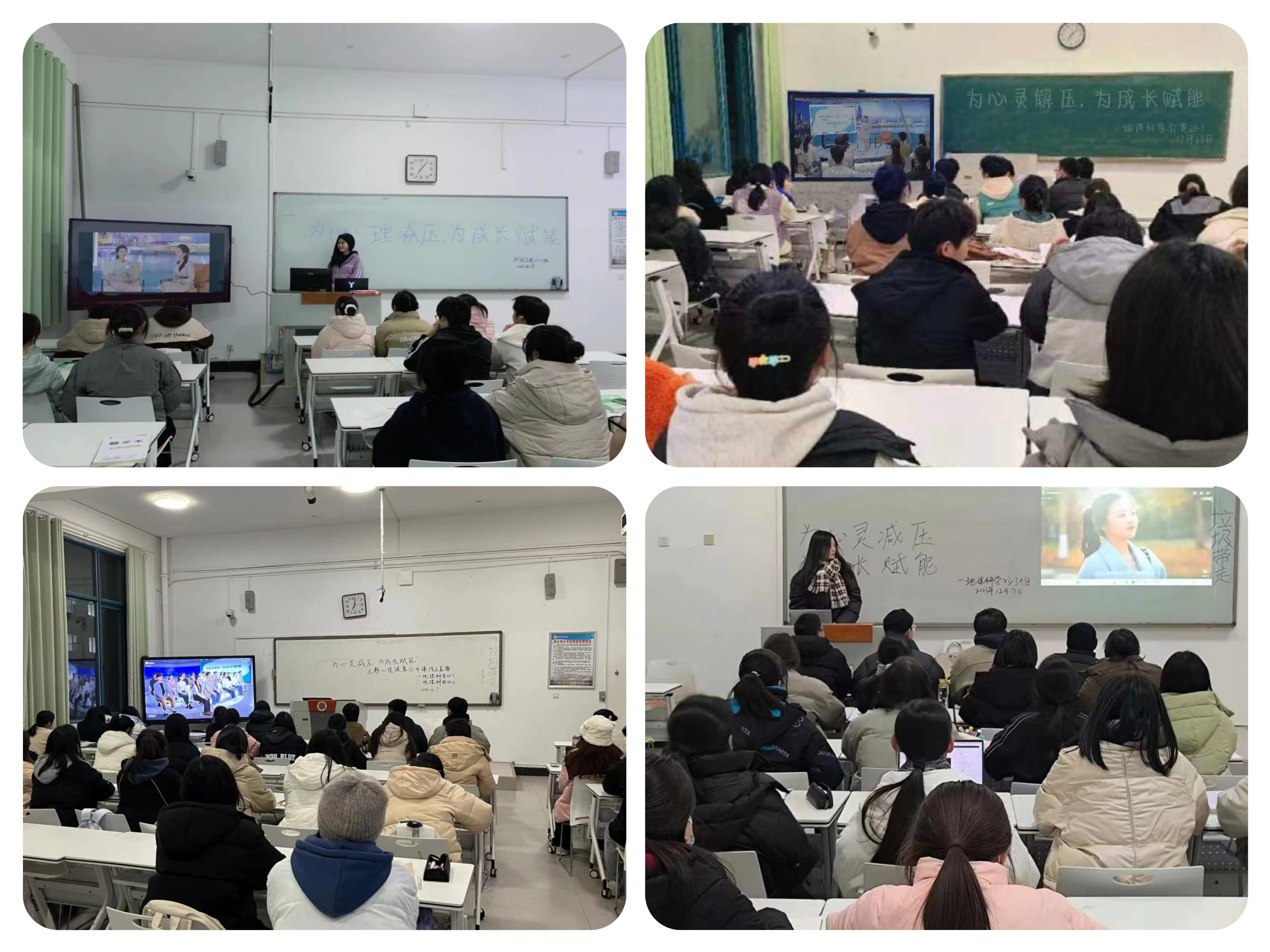 12月17日,beats365官方网站组织大一大二员工于晚自习教室集中观看了河南省教育厅举办的“为心灵解压 为成长赋能”主题心理健康公开课。