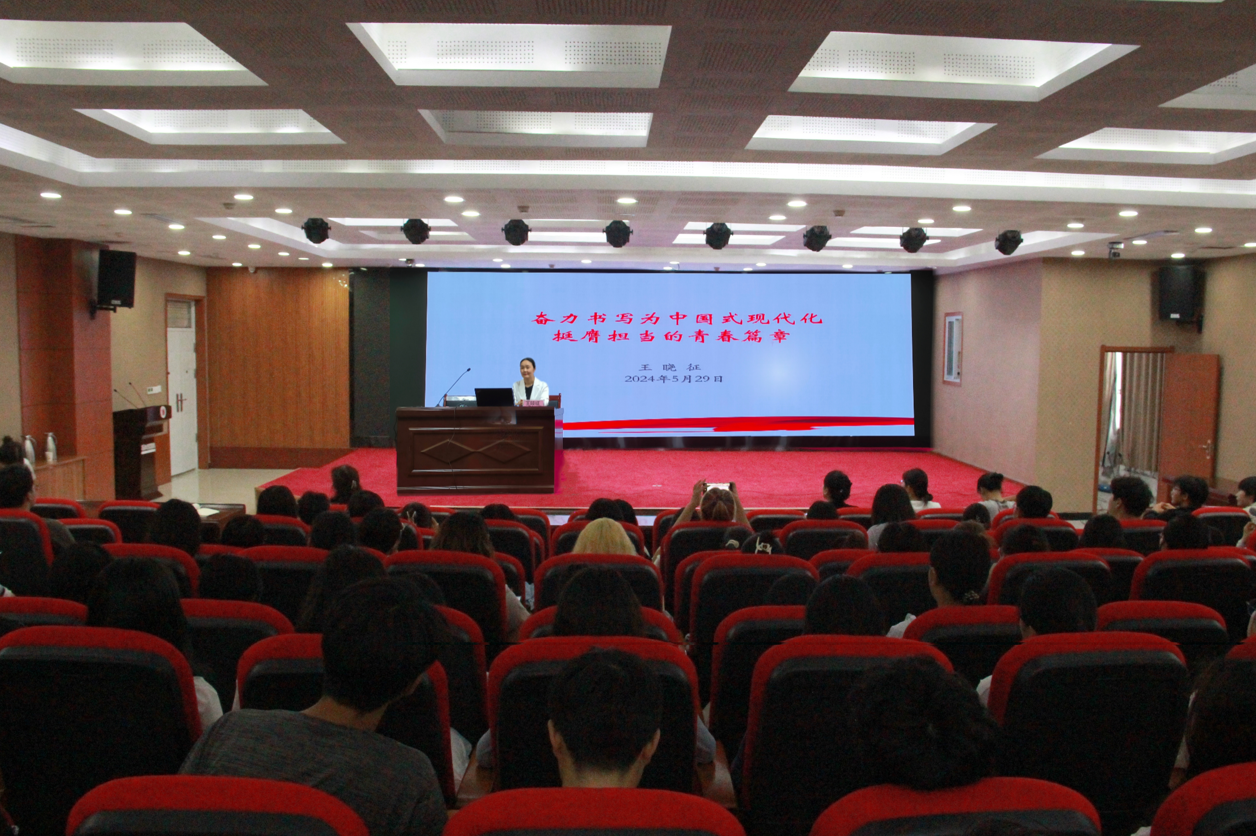 王晓征从“以青春之势拥抱时代、以青春之志树立远大理想、以青春之能担当时代重任、以青春之力练就过硬本领”四方面深入浅出地讲述了时代赋予青年老员工群体的责任与担当、使命与理想。她鼓励同学们要加强学习,提高综合素养;淬炼思想,塑造优秀品格;对标榜样,汲取奋进力量;心向阳光,涵养积极心态,五育并举,全面发展,争做有理想、敢担当、能吃苦、肯奋斗的时代新人,为实现中国式现代化和中华民族的伟大复兴贡献青春力量。