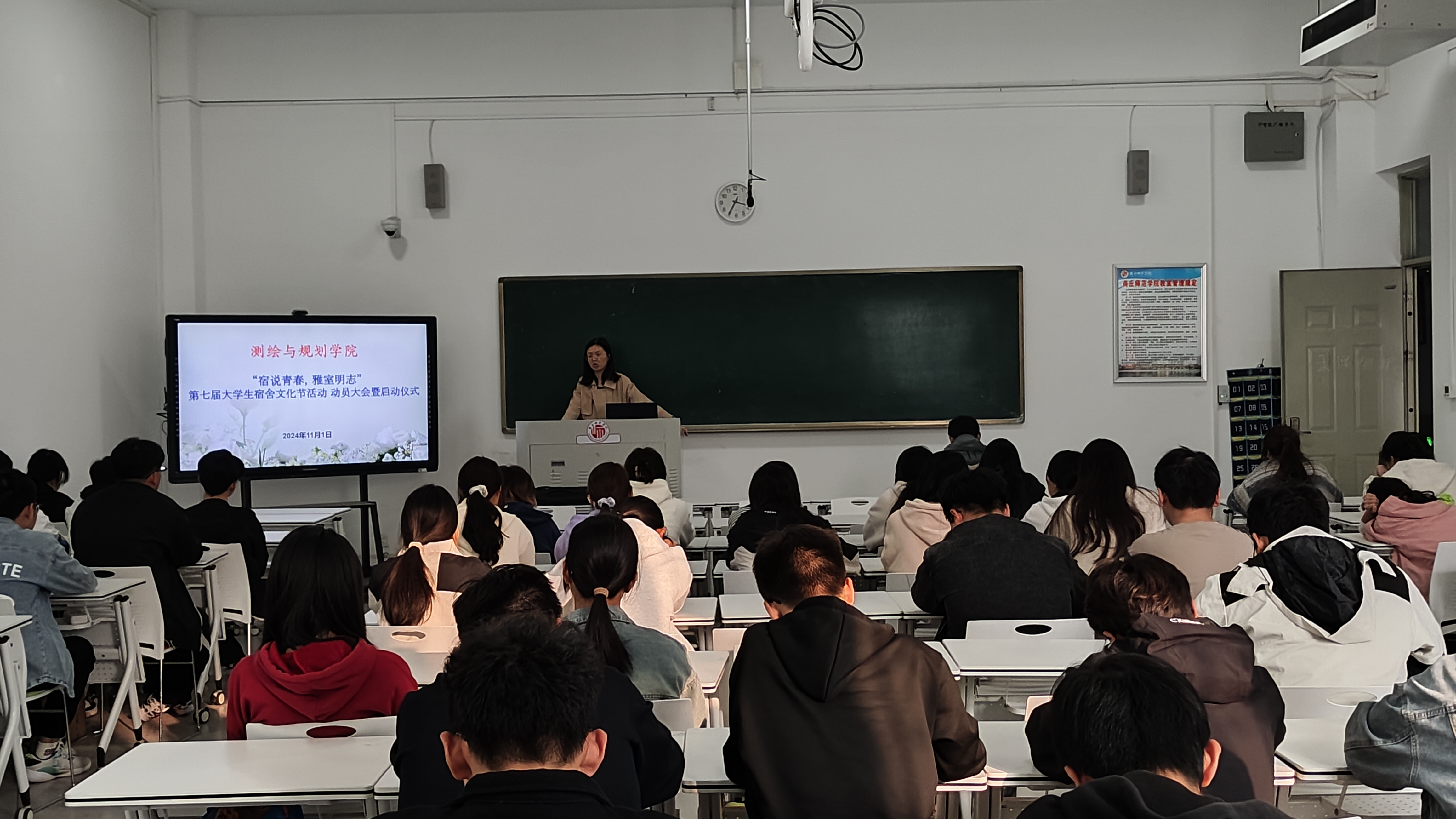 11月1日,beats365官方网站举行“宿说青春 雅室明志”第七届老员工宿舍文化节部署会。学工办副主任苏婉月、2024级辅导员和2024级全体宿舍长参加会议。会议由苏婉月主持。