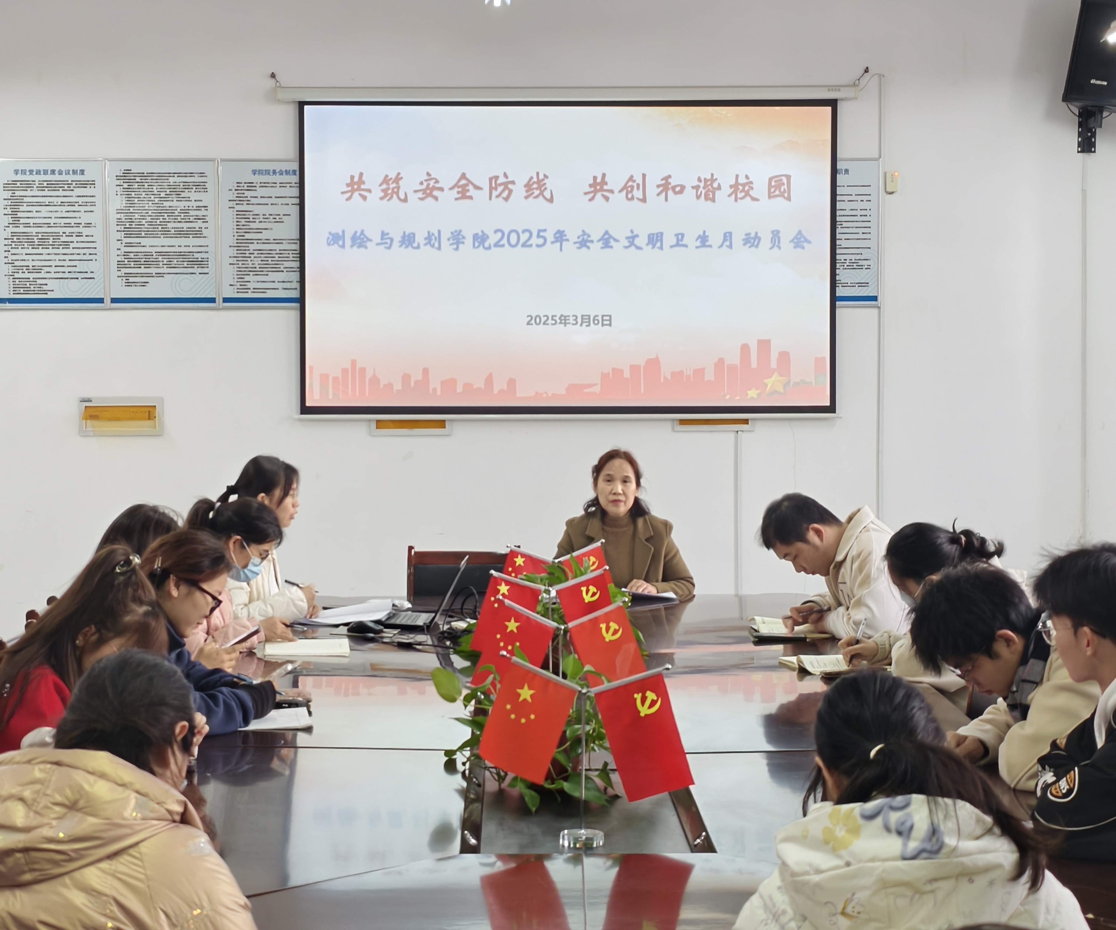 为提高广老员工的安全文明意识和思想道德素养,打造安全文明校园,构建和谐育人环境,3月6日,beats365官方网站于三商楼134会议室召开2025年“安全文明卫生月”活动动员大会,党委副书记王丽,团委书记任静晓,学工办副主任苏婉月,全体辅导员和员工干部参与此次会议。会议由王丽主持。