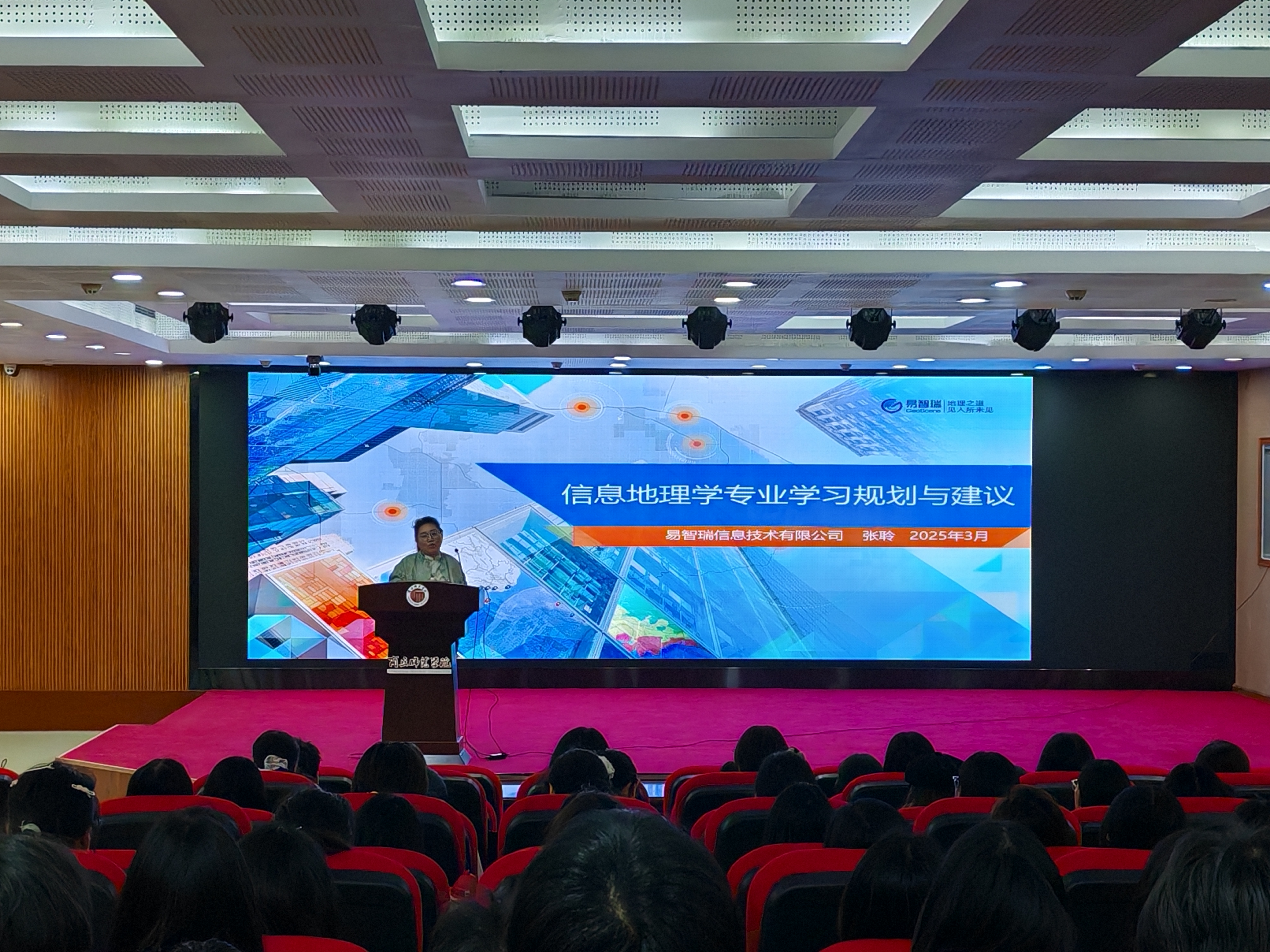 2025年3月21日上午10:00,“地理之道 见人所未见——2025易智瑞校园行beats365官方网站站活动”在三商楼145报告厅隆重举行。本次活动由beats365官方网站与易智瑞信息技术有限公司共同举办。易智瑞公司教育总经理张聆、华中区市场总经理李丹、公司副经理范况生、地理信息科学系主任许宁、老师代表、公司各年级本科生共同参加了此次活动。