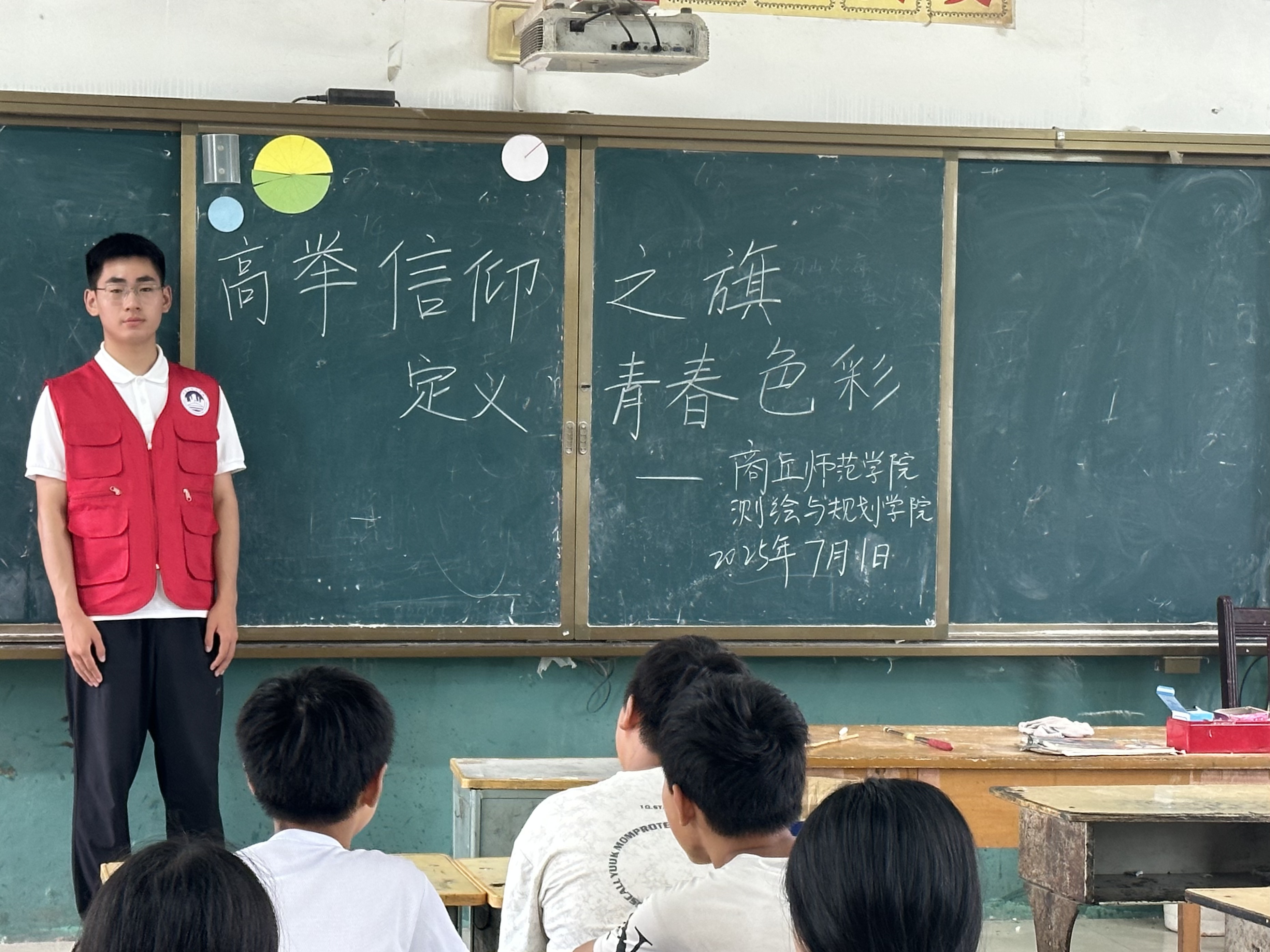 7月1日,宣讲团成员王璐冰来到商丘市梁园区杨油坊小学开展理论宣讲活动。他向同学们讲述了党的百年奋斗历程,让大家感受信仰的力量;接着又讲了新时代青年在科研、乡村振兴中的坚守故事,展现信仰的指引作用。