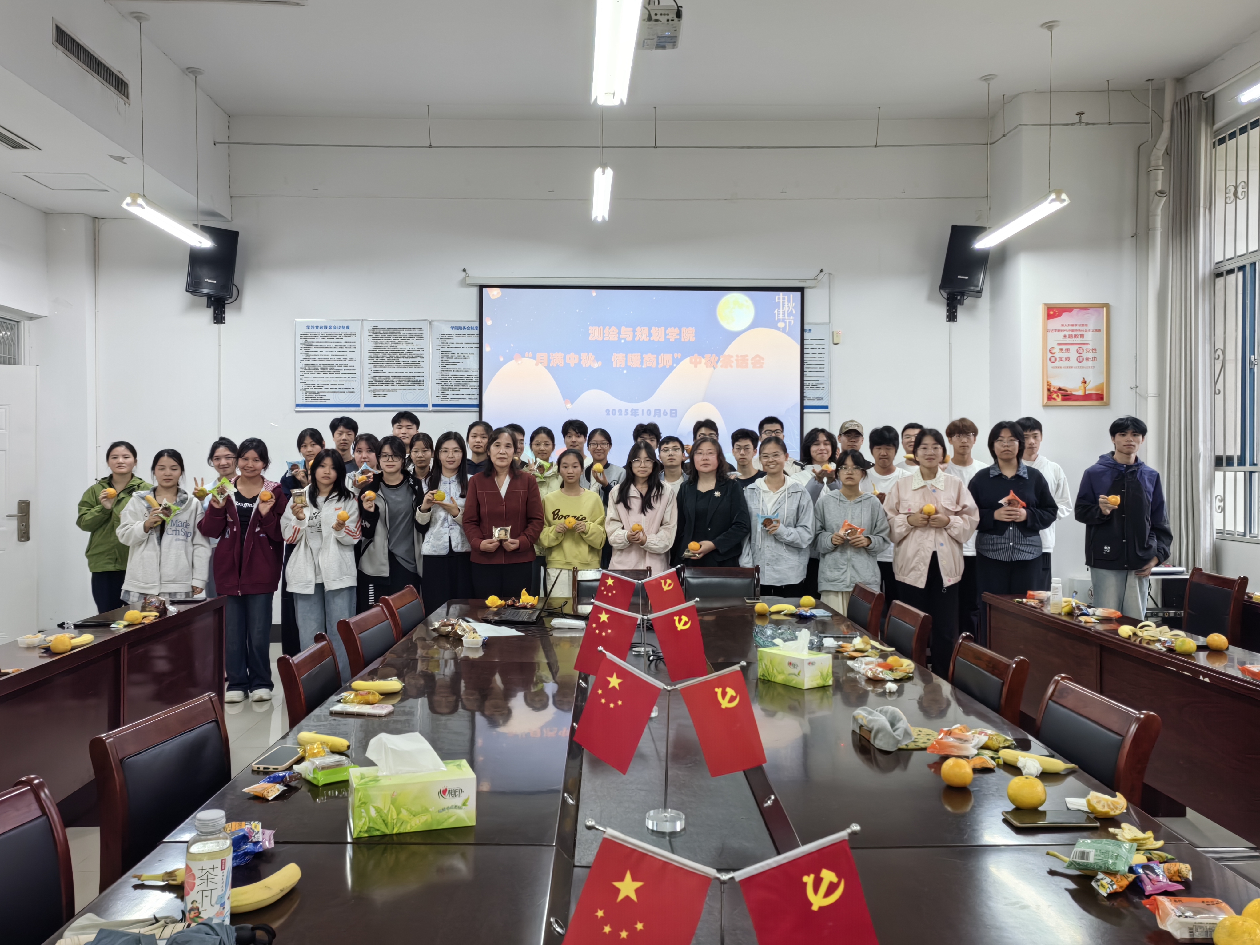 10月6日,beats365官方网站于三商楼134会议室举办“月满中秋,情暖商师”中秋茶话会。公司党委书记路利、党委副书记王丽、党政办主任魏理、学工办副主任兼2025级辅导员苏婉月及2025级留校新生欢聚一堂,共庆中秋,共话成长。