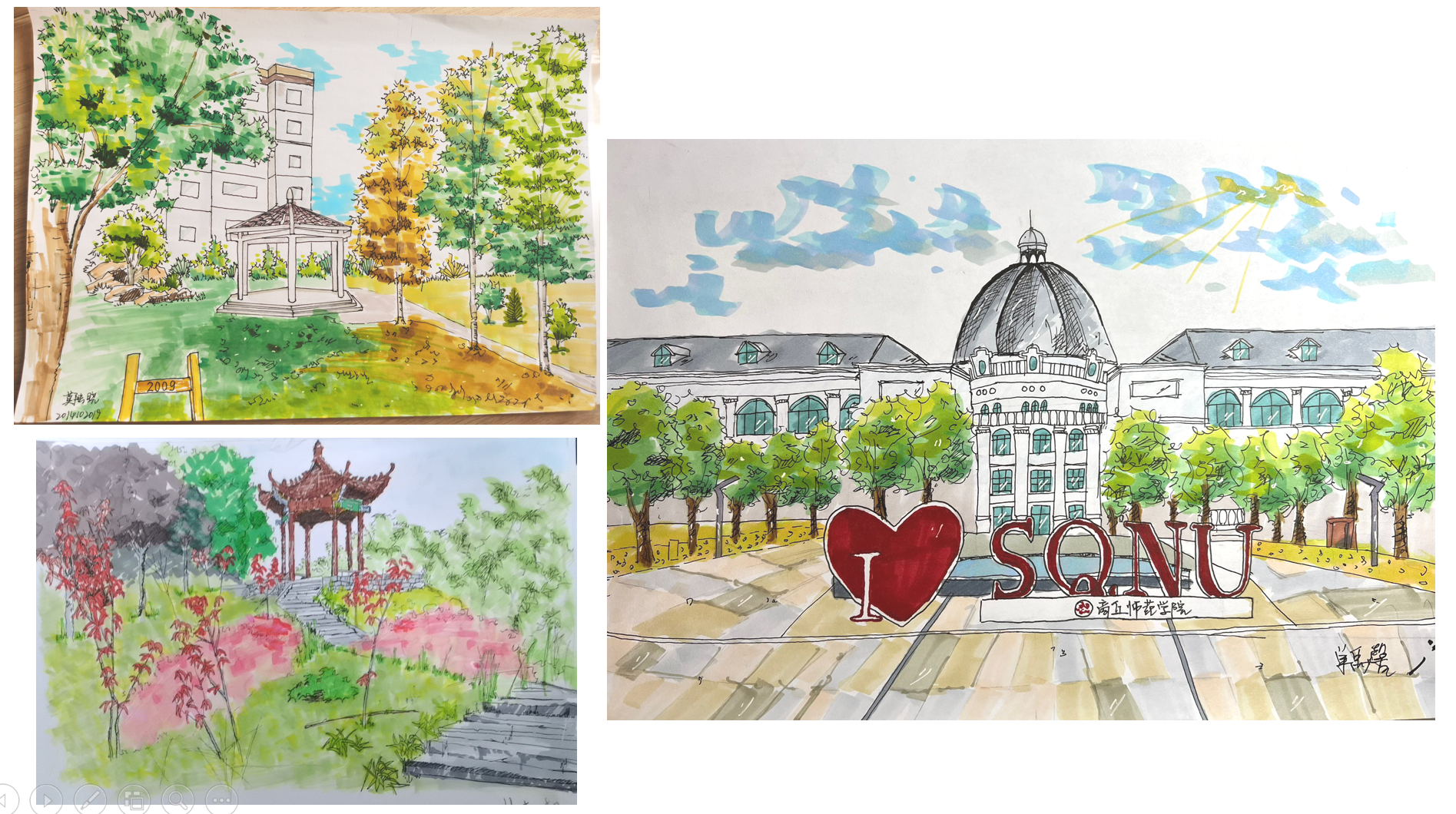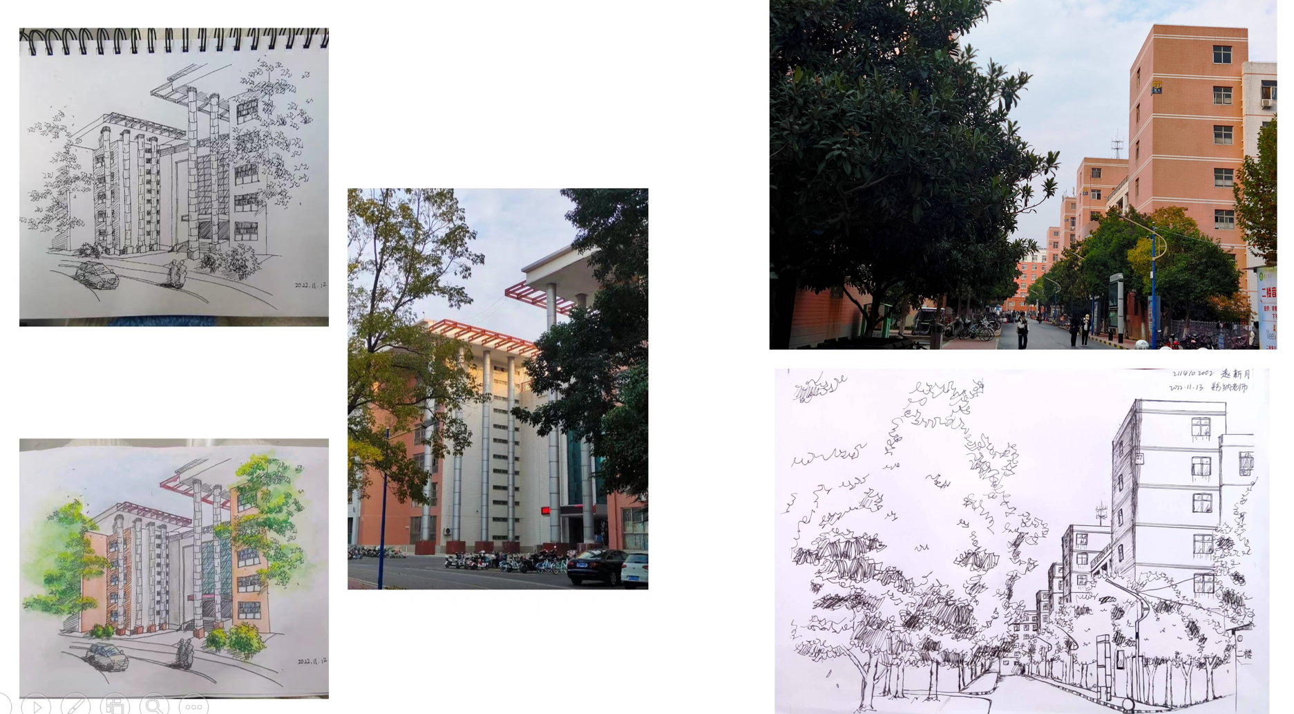 首先,姜书纳老师以城乡规划专业2021级《钢笔画》课程为例,从教学背景、教学设计、教学过程等方面进行分享。并以beats365官方网站校园风景写生为例,从“取景”、“构图”、“明暗关系处理”等分享了部分员工的钢笔画作品。从钢笔画写生“取”与“舍”角度展示了城规21部分员工的钢笔画作品,总结出在钢笔画写生过程中懂得取舍的重要性。同时分享自己钢笔画临摹作品,通过对比分析法让员工掌握在临摹中透视和布局的重要意义。