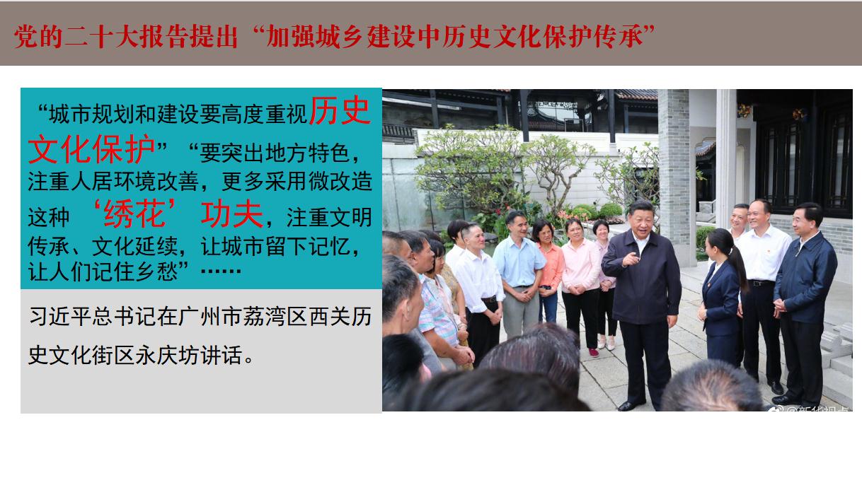 杨贵玲老师在《城市建设史》课堂上,以商丘古城为例,向同学们讲述商丘古城,城市、城墙、城湖、城郭四位一体的空间格局。外圆内方的古钱币造型本身,蕴含了“天圆地方”、“天人合一”、自然与人文和谐统一的哲学思想。习近平总书记在广州市荔湾区历史文化街区永庆坊讲话时就指出:“城市规划和建设要高度重视历史文化保护,要突出地方特色,更多采用微改造这种‘绣花’功夫,注重文明传承,让城市留下记忆,让人们记住乡愁”。