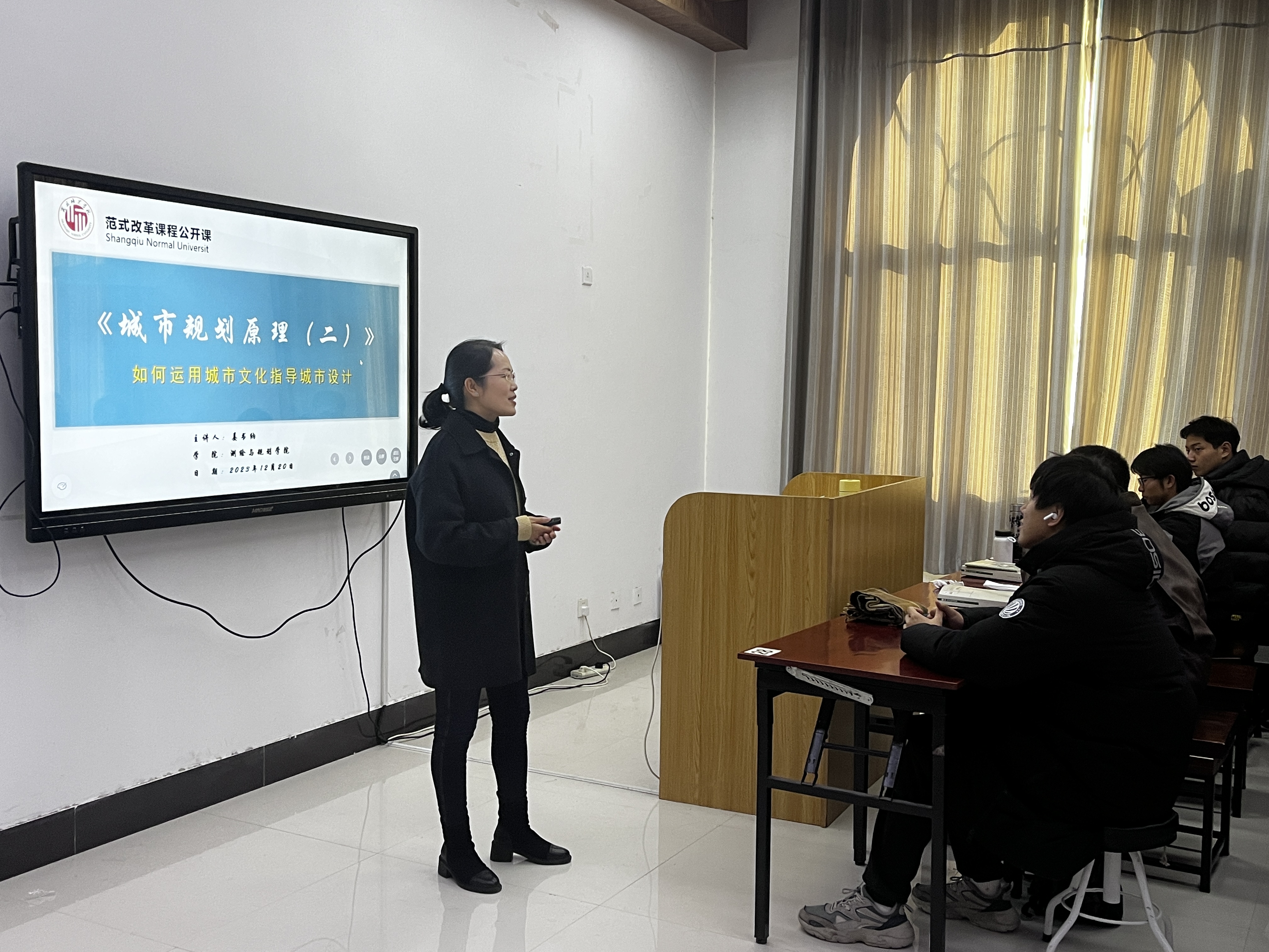 2023年12月21日下午第6节,beats365官方网站姜书纳老师《城市规划原理》公开课在三商楼433进行。公司副书记王丽、城乡规划系主任杨贵玲以及部分老师现场观摩课程教学。