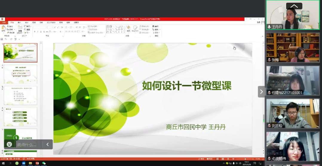 为帮助员工掌握微型课设计技巧,提升教学实践能力。2025年3月28日晚上,“互联网+”中学地理工作王丹丹老师为地理科学专业员工开展了一场主题鲜明、内容丰富的微型课设计讲座。2022级地理科学专业全体员工参与此次讲座。此次讲座由张梅老师主持。