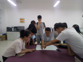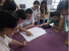 建筑小品设计小组的同学正在调研 建筑小品设计小组的师生正在讨论
