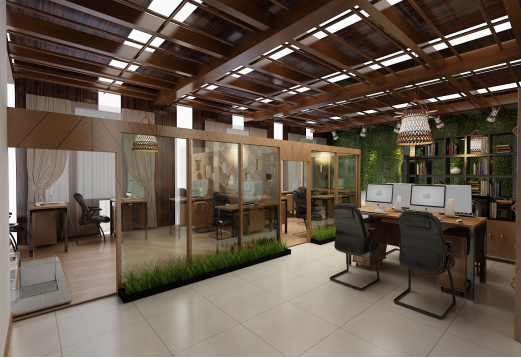 场地面积约40平方米,主要功能是专业沙龙、方案论证、项目汇报、业务洽谈等,为员工提供模拟实际项目汇报的锻炼机会和场地。