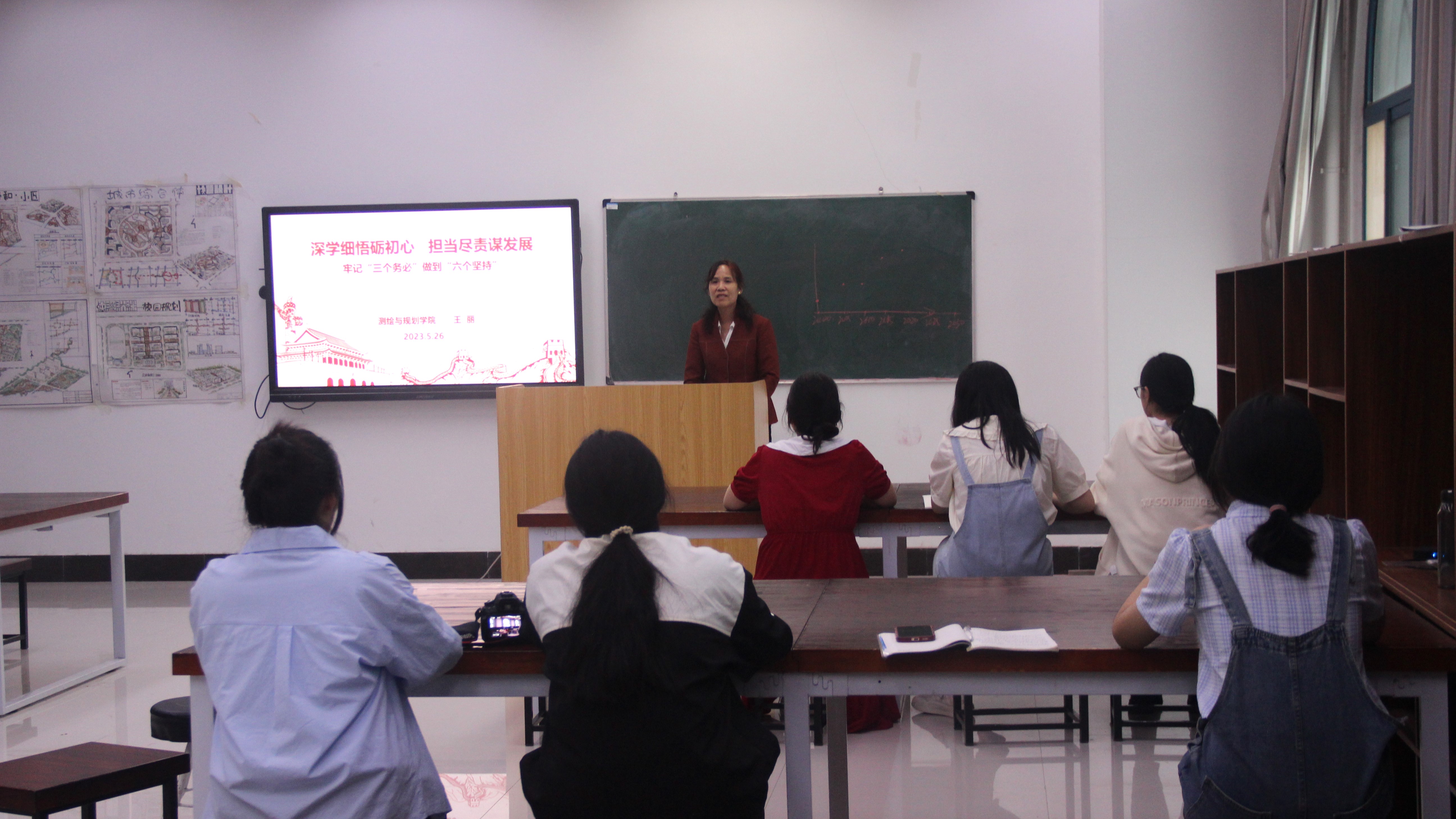 会上,王丽讲解了“三个务必”及“六个坚持”的科学内涵,她指出,大家要不断武装头脑、推动实践,丰富扎实学识,以守正创新的自我要求推进学习和工作,充分发挥党员的先锋模范作用,在班级作表率,争做新时代“四有好青年”。