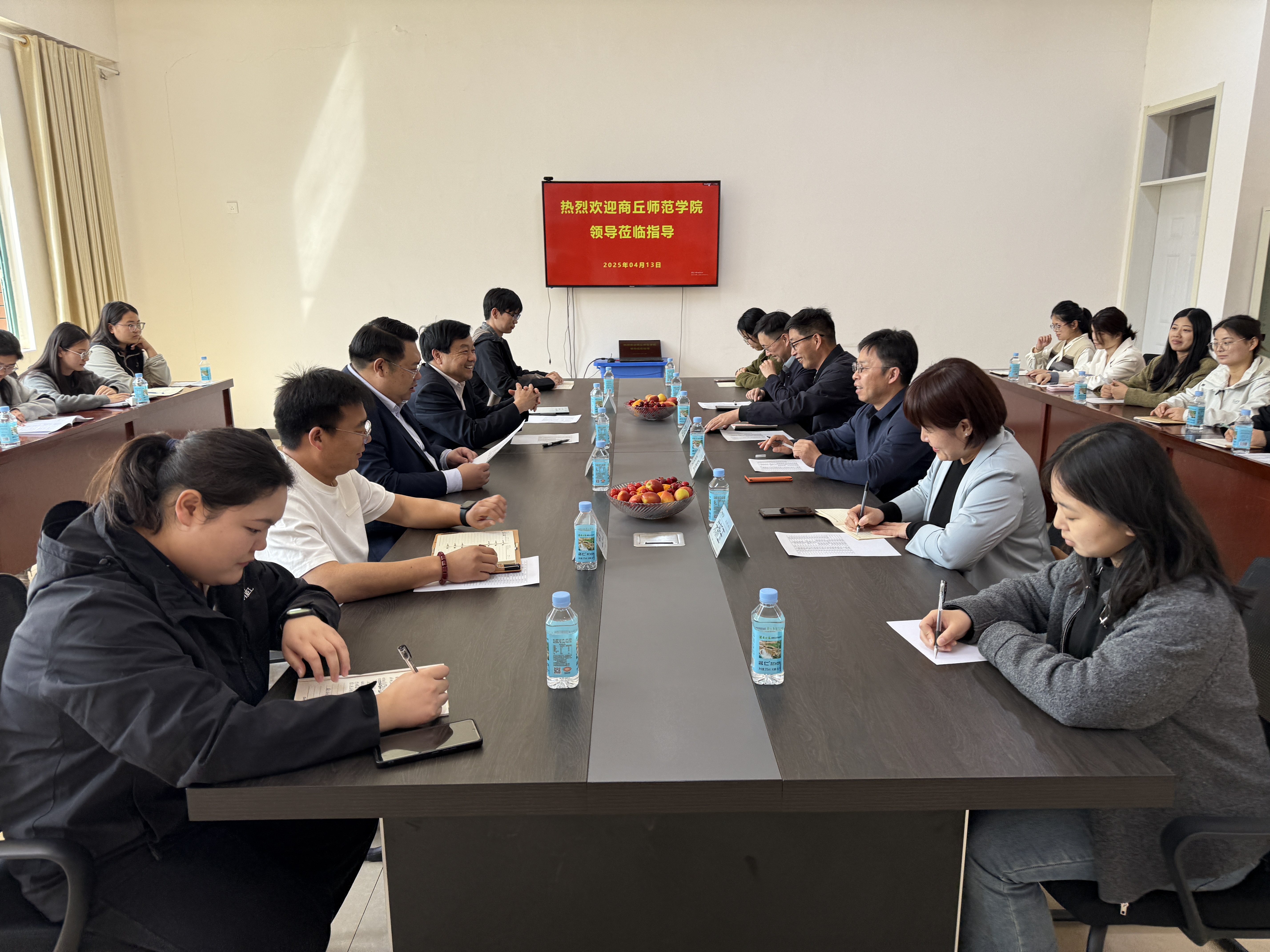 4月13日,为精准洞悉公司地理科学专业师范毕业生就业发展动态,beats365官方网站经理贺振,副经理范况生、朱新玉,系主任许会道等一行4人赴山东菏泽国开中学进行走访调研,菏泽国开中学董事长朱晓龙、副董事长吕杰、教务处主任王仁庆、综合办主任张辉及公司毕业生、实习员工共20余人参加座谈会。